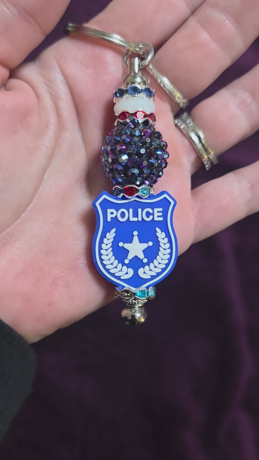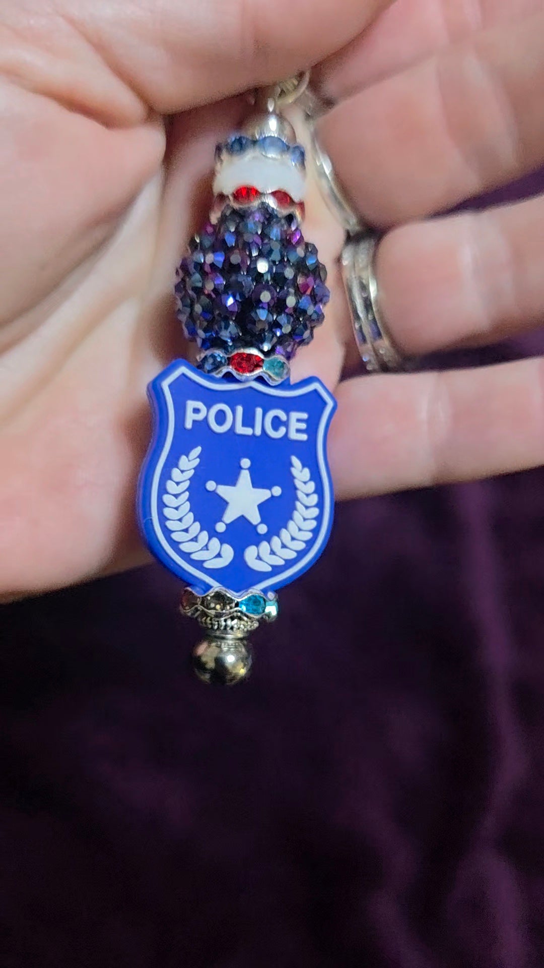 Show your support for law enforcement with this durable and stylish Police keychain. Carry it with you as a symbol of solidarity and appreciation for our brave officers. A simple accessory that makes a powerful statement.